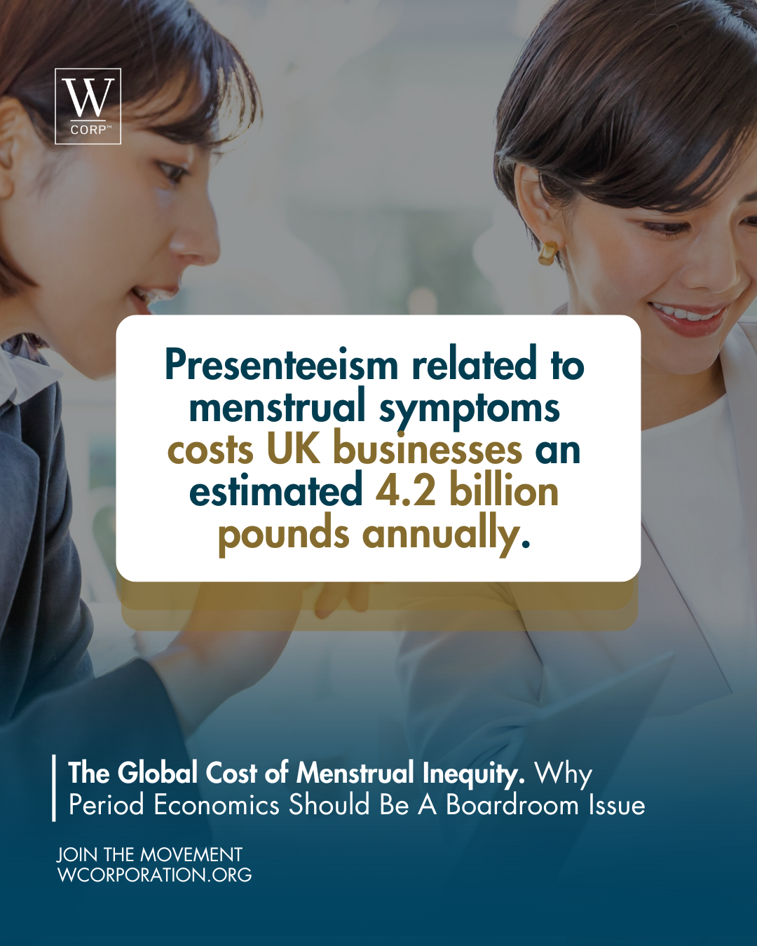 Presenteeism related to menstrual symptoms costs UK businesses an estimated 4.2 billion pounds annually according to the Fawcett Society.